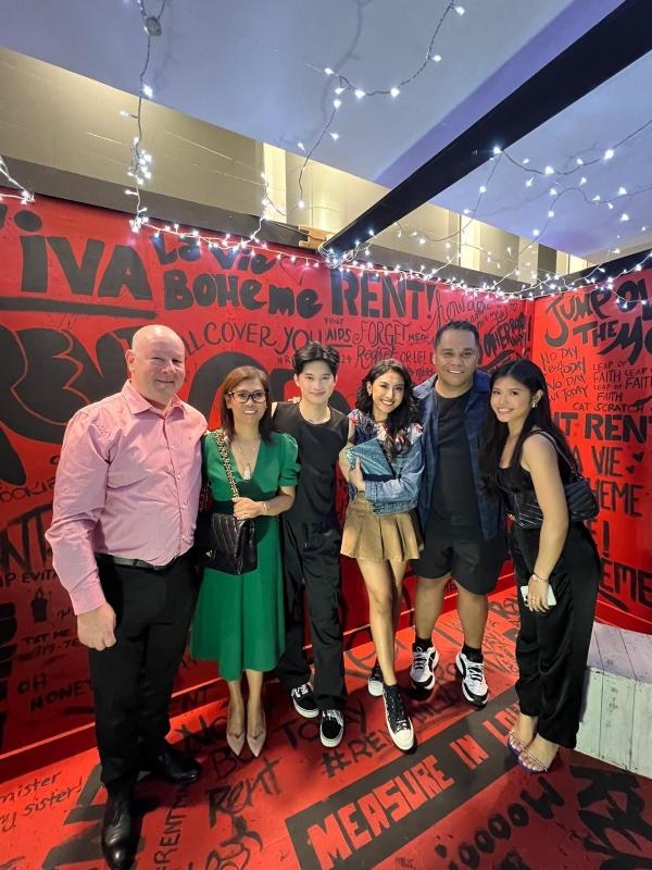 Thea Astley had a memorable night as Mimi in 9Work Theatrical's "Rent" as her family from Qatar flew in the Philippines to watch her perform. Here they are with Thea's castmates in Rent, Kapuso Soul Balladeer Garrett Bolden (second from right) and Adrian Lindayag (third from left).