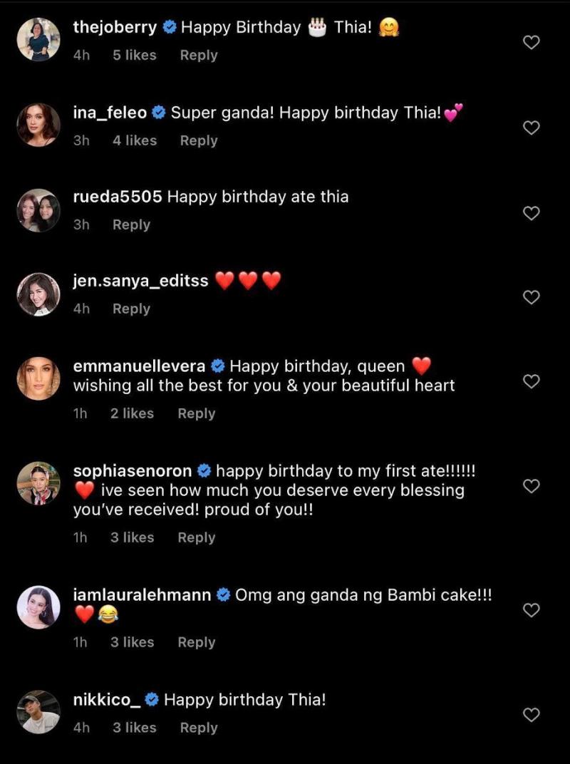 The said Instagram post is now flooded with greetings from Thia's celebrity friends. Among those who greeted her were Little Princess star Jo Berry, Kapuso actor Nikki Co, Ina Feleo, and many more.