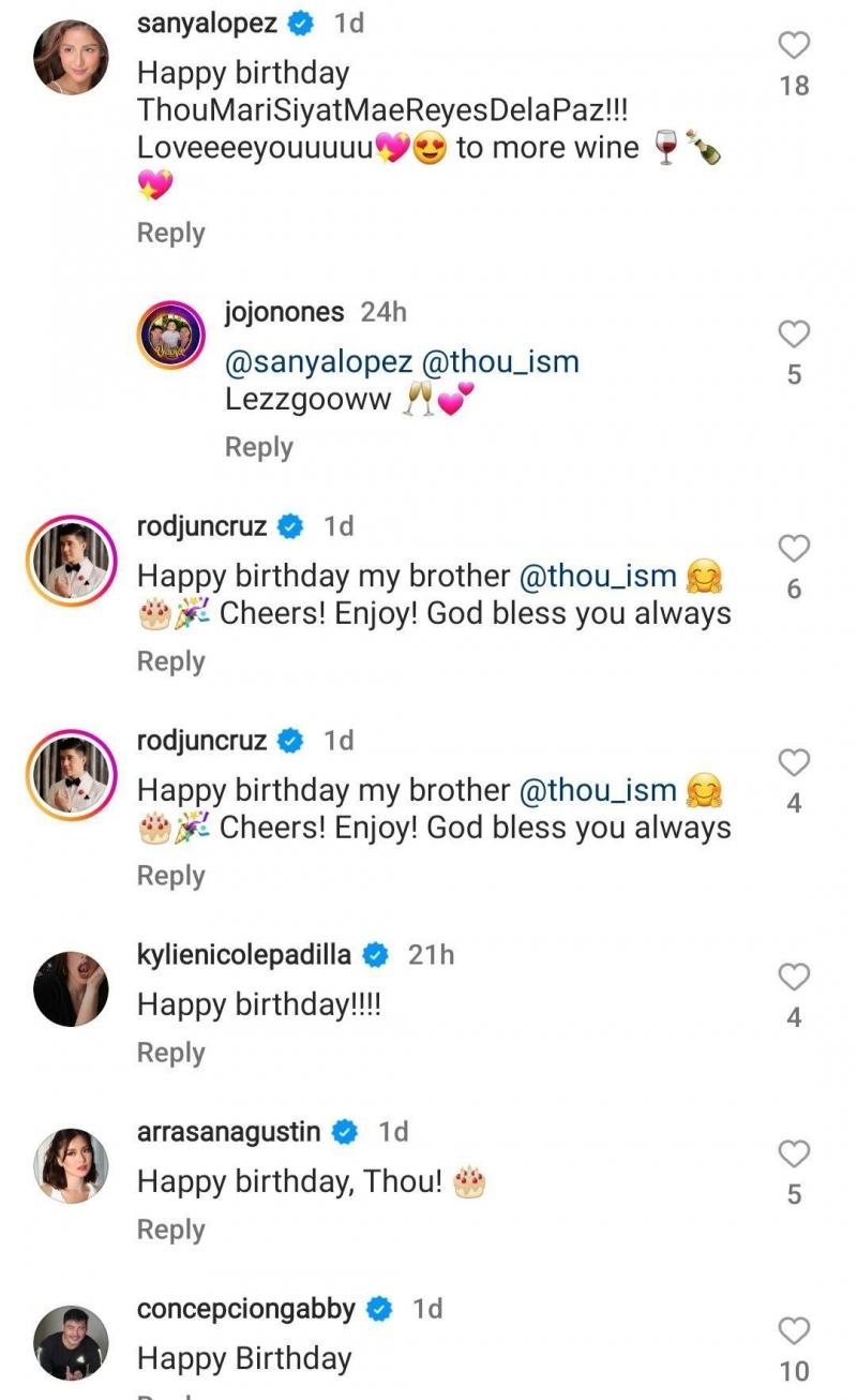 "Happy birthday ThouMariSiyatMaeReyesDelaPaz!!!! Loveeeeyouuuuu to more wine " @sanyalopez commented.