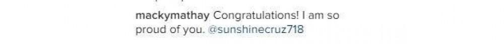 Wala pang opisyal na pahayag si Sunshine Cruz o si Macky Mathay sa tunay na estado ng kanilang relasyon.