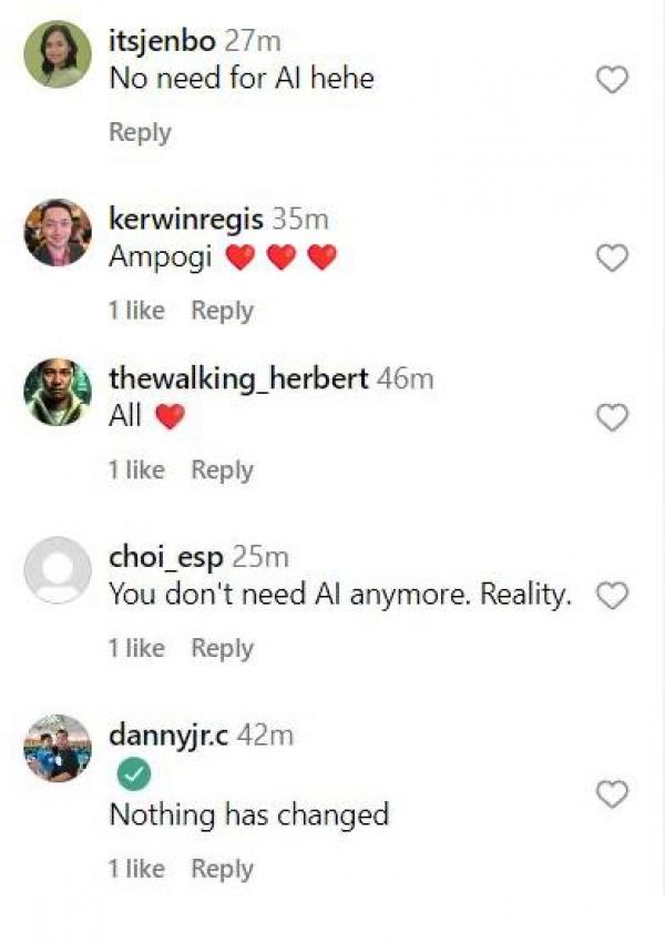 Hirit niya sa captions, “Riding the AI filter wave. Ganyan lang yung AI namin noong 90s. Pero ngayon, may bayad yung AI filter, agad-agad 300! Kaya ito na lang. Alin dito bet mo?”