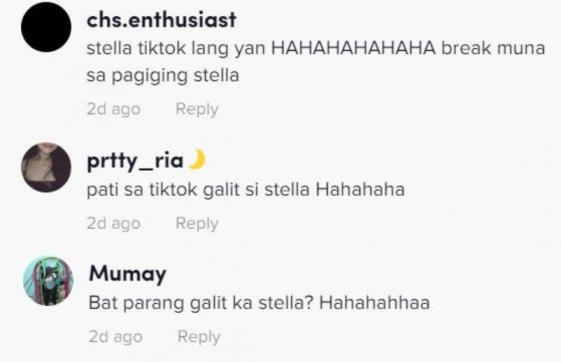 Ayon naman sa isang netizen, "pati sa tiktok galit si stella Hahahaha."