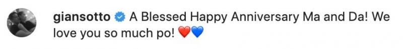 "A blessed happy anniversary Ma and Da! We love you so much po!" Gian wrote.