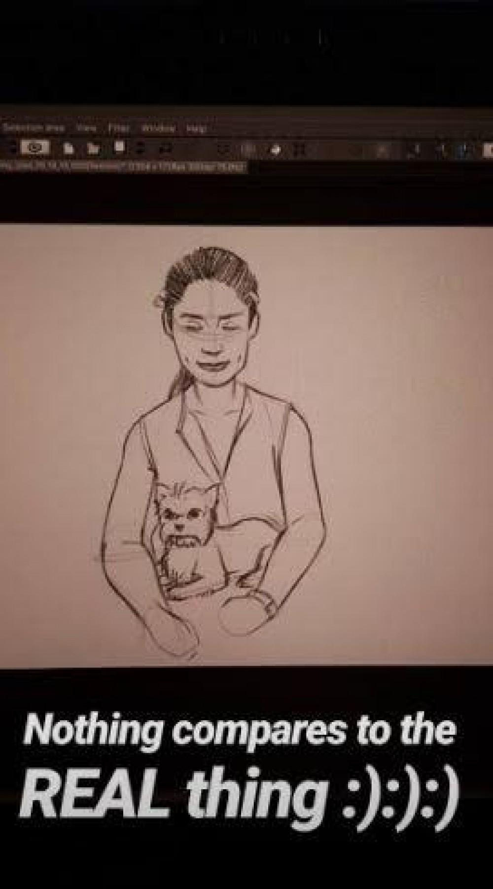 During his Dragon Lady taping, Carla visited Tom in their set location. While preparing for his scenes, Tom secretly drew Carla through his laptop.