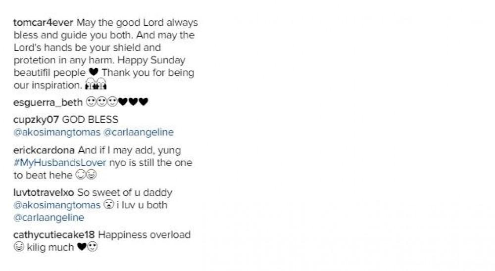 He wrote: "There are infinite multiverses and infinite possibilities and I am lucky to be on this one because of you @carlaangeline :) thank you for not only being an inspiration but a rock that holds me up to strive to be all that I aspire to. :):) #lucky"