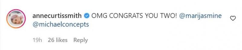 Among those who expressed their congratulations is Anne Curtis who was previously in a relationship with Sam Milby--also Mari's ex-boyfriend.