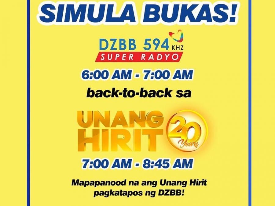 “Simula bukas, mapapanood n'yo na ang UH Barkada pagkatapos ng DZBB mula 7:00 AM hanggang 8:45 AM.”