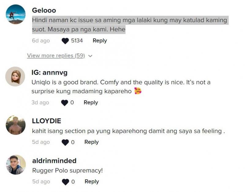 Sabi ni @Gelooo “Hindi naman kc issue sa aming mga lalaki kung may katulad kaming suot. Masaya pa nga kami. Hehe”