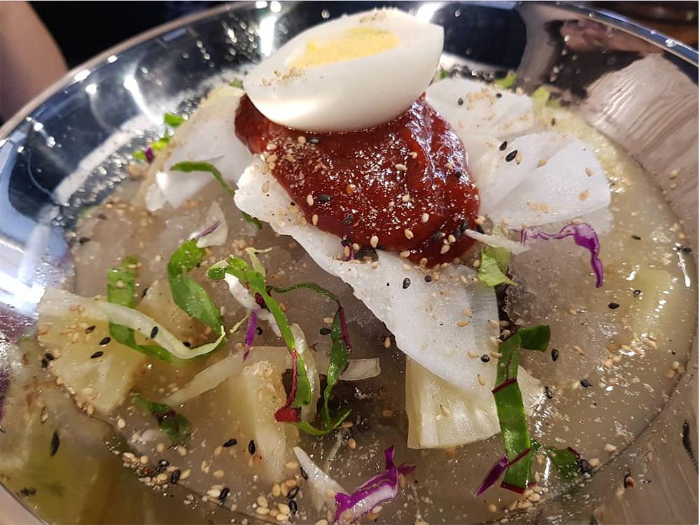 Bingsu isn't the only Korean dish made for hot weather. Naengmyeon is a cold noodle dish consisting of long, thin noodles, cucumbers, beef, boiled egg, and potatoes. This refreshing, filling noodle dish is best served in the summer.