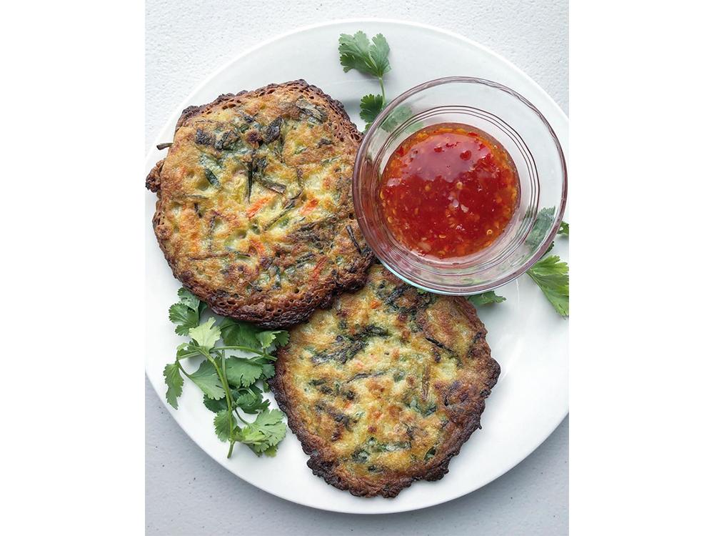 Pajeon is simply a green onion pancake made from a batter of eggs, wheat flour, rice flour, and other ingredients depending on the variety. Haemul Pajeon is a variety of pajeon mixed with seafood such as shrimp, oysters, squid, and clams.