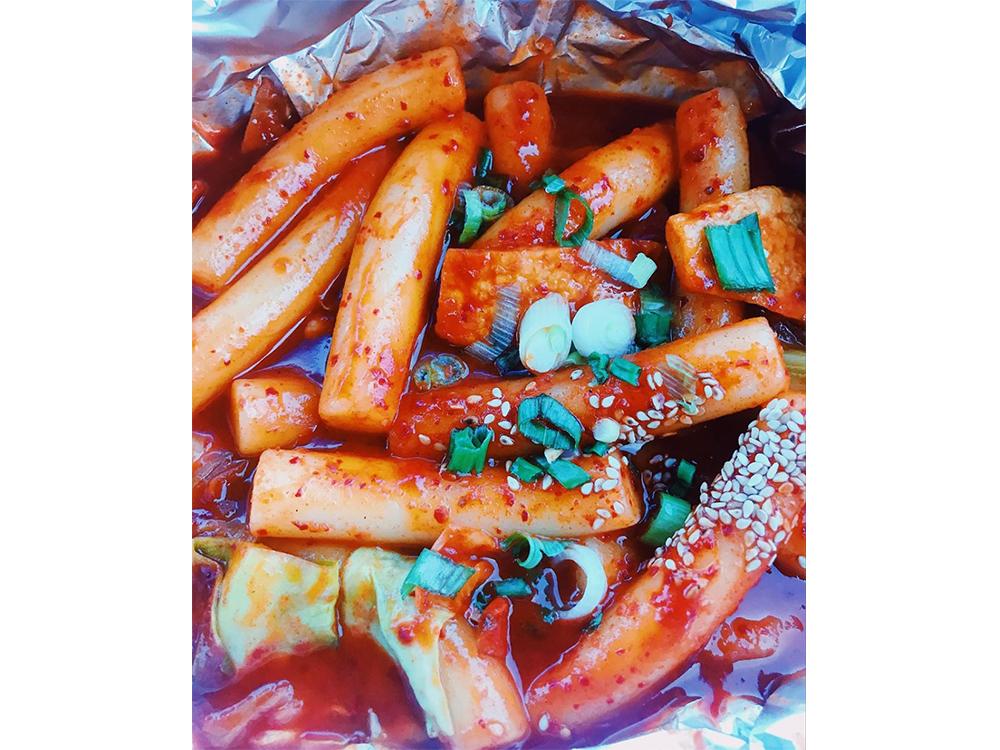 Tteokbokki or spicy rice cake is famous street food in Korea. Famous as comfort food, it is made of cylinder-shaped white rice cake dipped in spicy gochujang sauce.