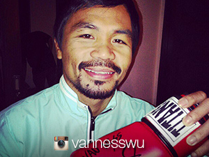 On his Instagram account, Van Ness posted a photo of Pacman holding a signed boxing gloves which the international singer received as a souvenir. By AL KENDRICK NOGUERA