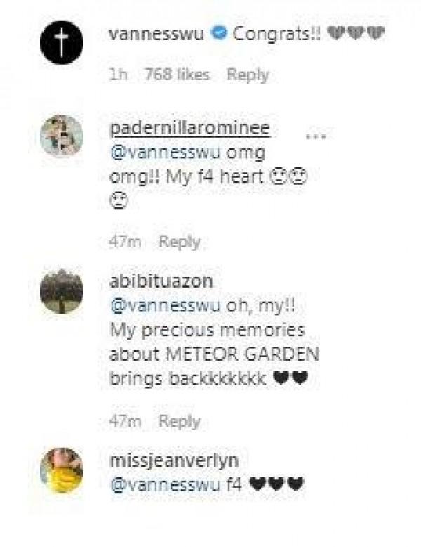 Taiwanese celebrity and former boy band member Vaness Wu was among the first celebrities to congratulate Anne, which ignited the interest of F4 fans.