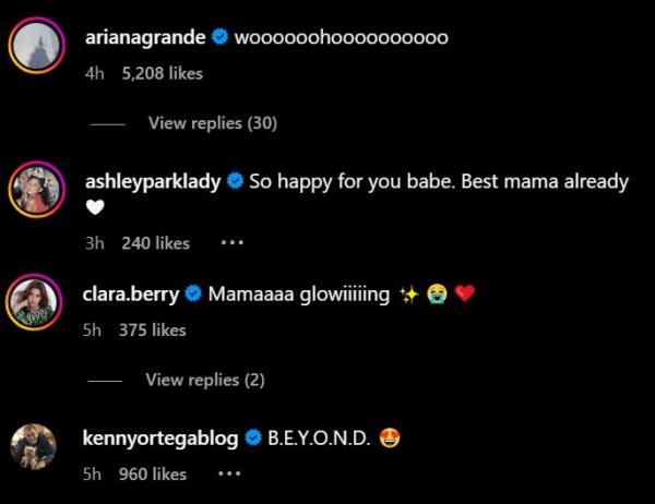 Other celebrities like Ariana Grande, Ashley Park, and Clara Berry dropped supportive comments on the post, praising how she looked stunning and glowing in her picture.