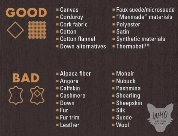 The second crucial step to guaranteeing that the clothes, shoes, bags, and accessories that you're purchasing are truly vegan is to familiarize yourself with vegan or cruelty-free materials. Here's a list from PETA: