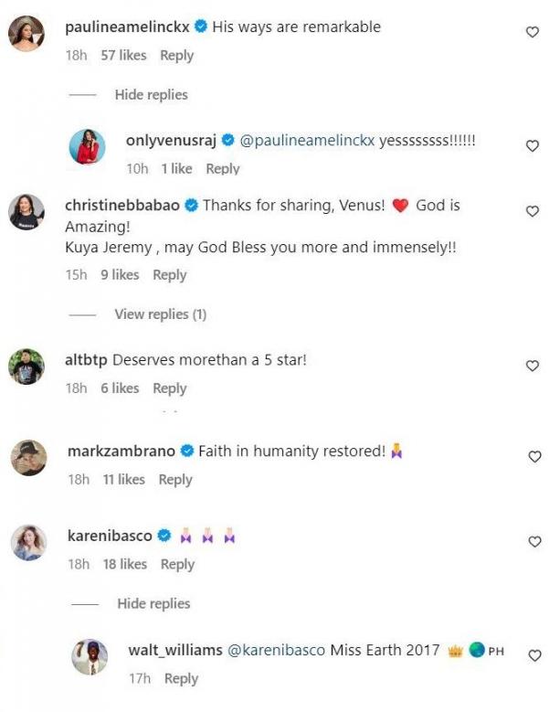 Ilang celebrities ang nag-react sa post ni Venus tulad ng TV host na si Christine Babao at Miss Supranational 2023 1st runner-up Pauline Amelinckx.