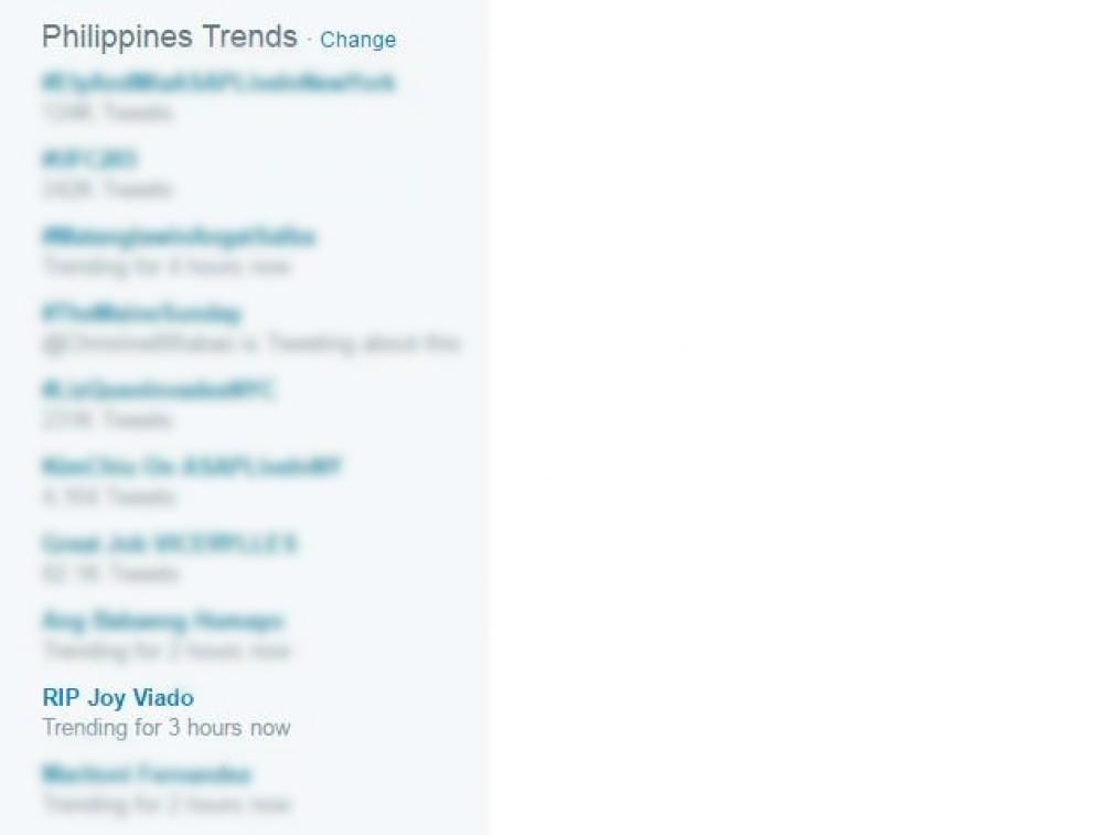“RIP Joy Viado” has been on the top trending list as of this writing. Showbiz personalities like Ogie Alcasid, Teddy Corpuz, and Ate Gay has expressed their deepest condolences online.
