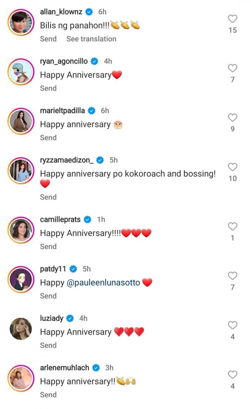 Celebrities who greeted Pauleen and Vic on their special day include Allan K, Ryan Agoncillo, Mariel Padilla, Arlene Muhlach, Sugar Mercado, and Luane Dy-Gonzales.
