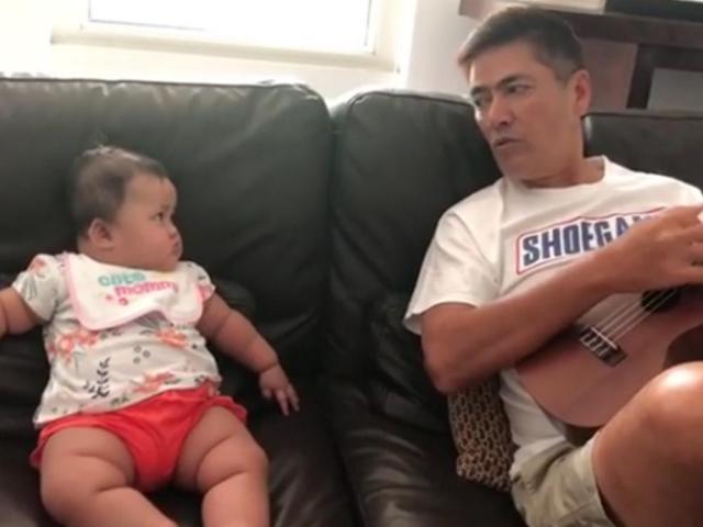 Hindi man tumawa, bumawi naman si Talitha sa huli. Hinawakan niya ang mukha ni Bossing na tila nagsasabing "Daddy, ganda ng boses mo!"