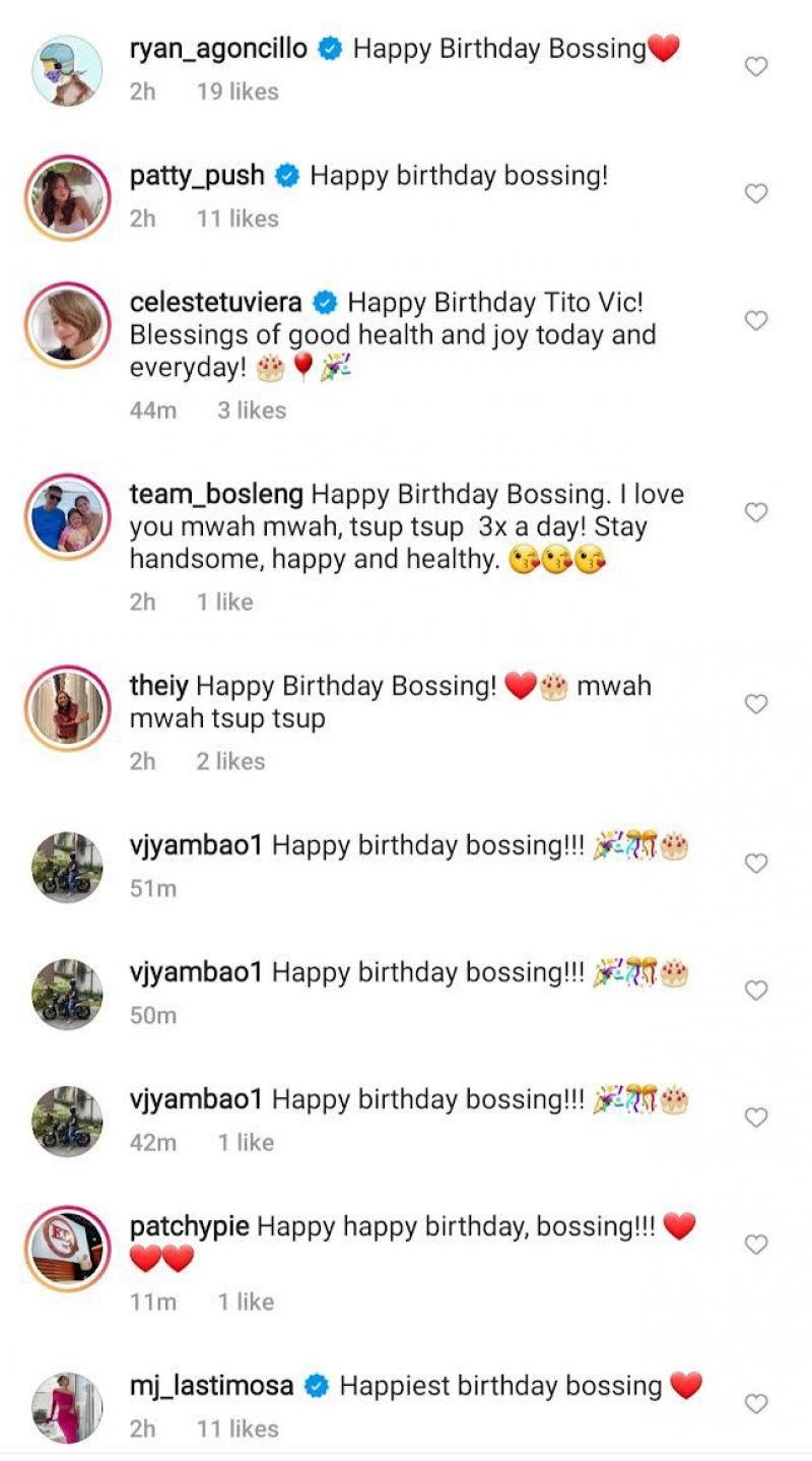 Other Eat Bulaga hosts including MJ Lastimosa and Ryan Agoncillo, also sent their birthday greetings for Vic in the comments section.