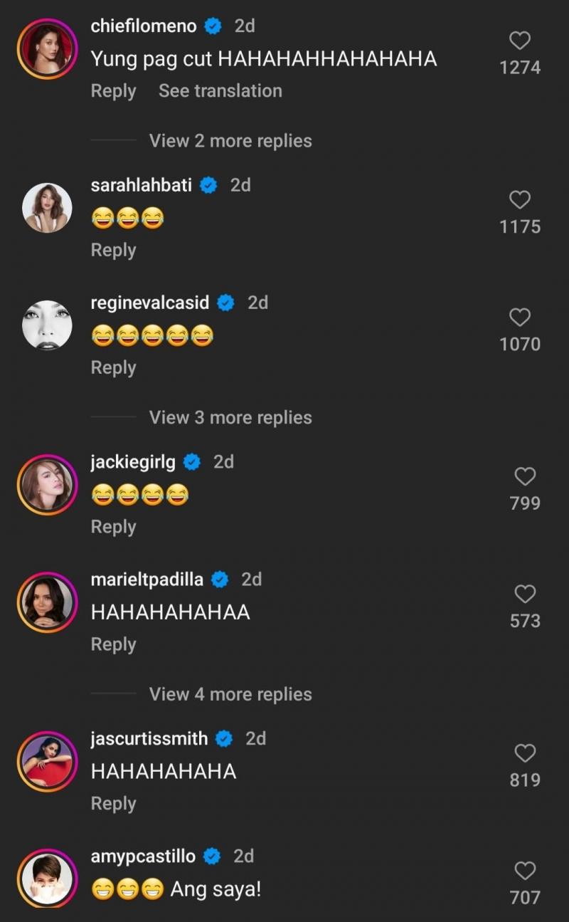 In the comments section, celebrities such as Jasmine Curtis-Smith, Jackie Gonzaga, Amy Perez, Sarah Lahbati, Regine Velasquez-Alcasid, Chie Filomeno, and Mariel Padilla couldn't help but be entertained by Anne and Vice's funny moment together.