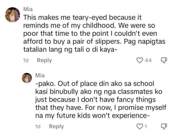 “This makes me teary-eyed because it reminds me of my childhood. We were so poor that time to the point I couldn't even afford to buy a pair of slippers,” komento ng isang netizen.