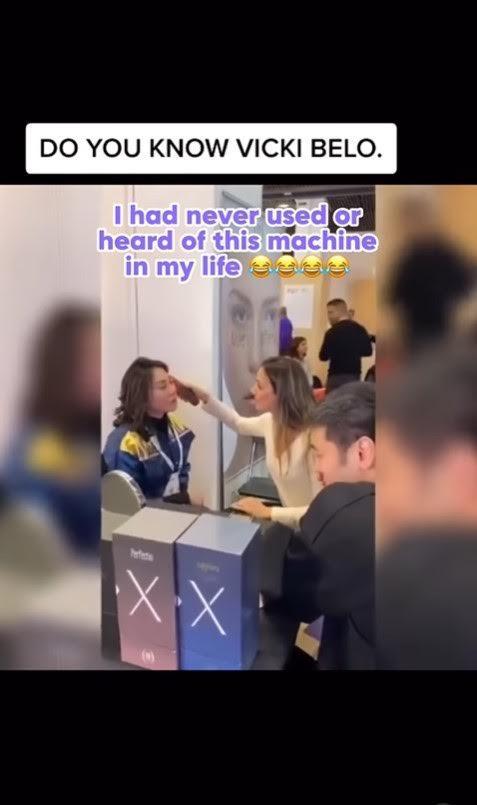 The couple stopped by a booth of a handheld anti-aging device where the merchandiser claimed that their product was being used by the famous doctor Vicki Belo from the Philippines.