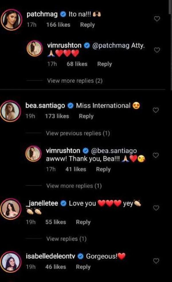 Fellow beauty queens like Miss International 2013 Bea Rose Santiago, Patricia Magtanong, and 2019 Miss Multinational Philippines Isabelle De Leon also expressed their support to Vickie.