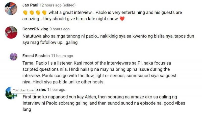 Sagot naman ng isang netizen, "Tama. Paolo Is a listener. Kasi most of the interviewers sa PI, naka focus sa scripted questions nila. Hindi naiisip na may na bring up na issue during the interview. Paolo can go with the flow, light or serious, sumusunod siya sa guest niya. Hindi siya pa-bida unlike other hosts."
