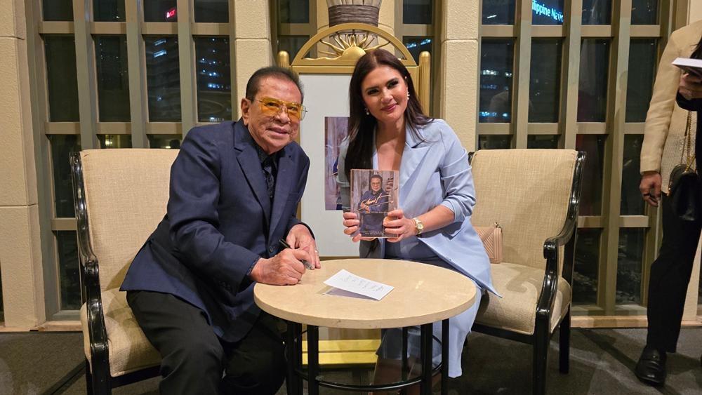 Chavit Singson is all smiles beside Riza Hansen, the publisher of his book.