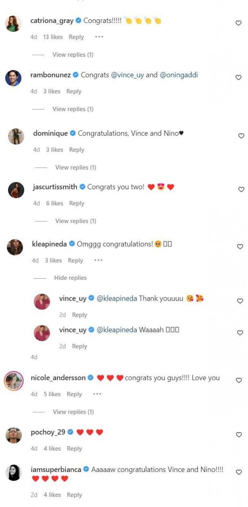 The newly-engaged couple also received a ton of congratulatory messages from other celebrities including Catriona Gray, Bolera star Klea Pineda, Eat Bulaga host Paolo Ballesteros, and Dominic Roque.