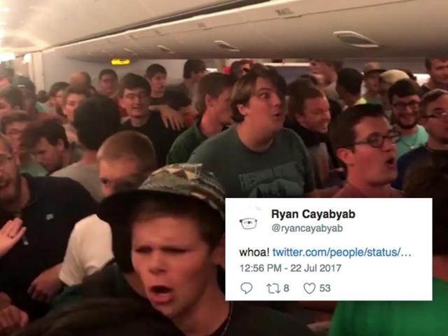 "When you go coconuts on an Emirates flight. Thank you Baylor University Men's Choir for a great onboard performance," says Emirates on its post.