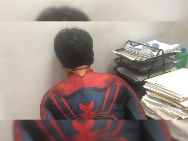 The police arrested a man dressed as the popular cartoon superhero Spiderman at the Araneta Coliseum on Friday night.
