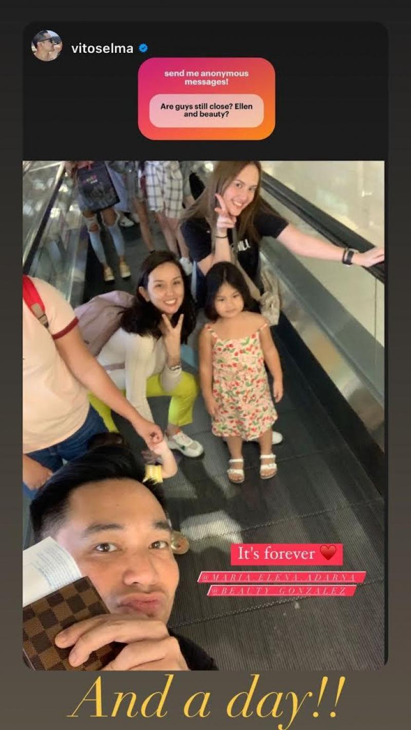 Vito answered, "It's forever" and showed a photo of him together with Beauty, her daughter Olivia, and Ellen, which appears to be taken in an airport.