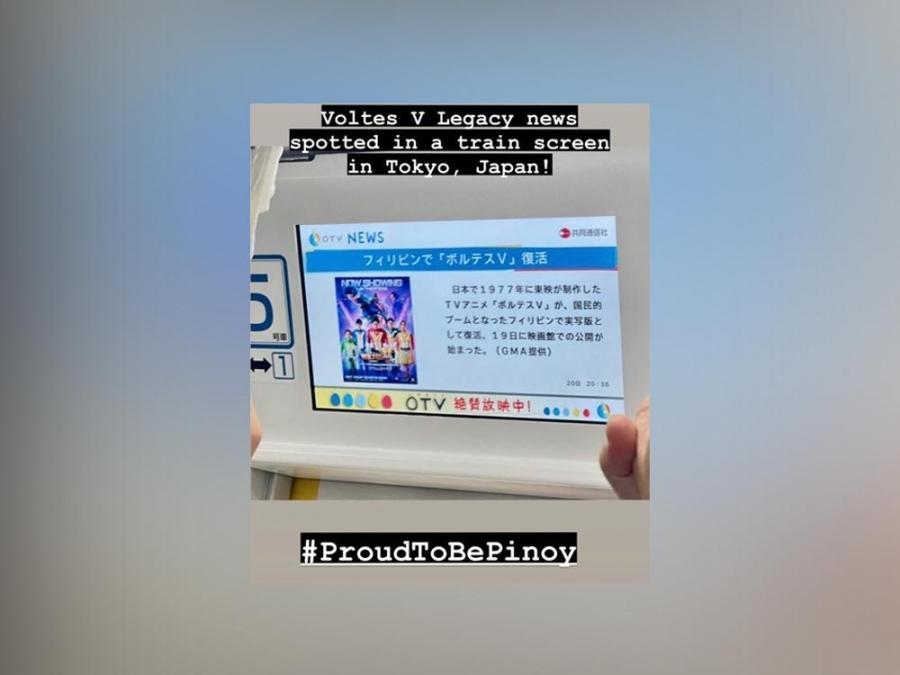 Sa Instagram post niya ngayong Biyernes, April 21, ibinahagi niya ang isang larawan kung saan makikitang itinampok ang theatrical release ng inaabangang live-action adaptation ng Japanese anime na Voltes V, na binansagang Voltes V: Legacy: The Cinematic Experience, bilang isang news item na ipinakita sa train screen sa Tokyo, Japan.