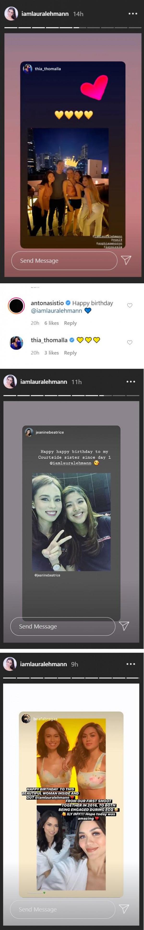 Also greeting Laura on her birthday were Kapuso beauty queen Thia Thomalla and fellow UAAP courtside reporter Jeanine Tsoi.