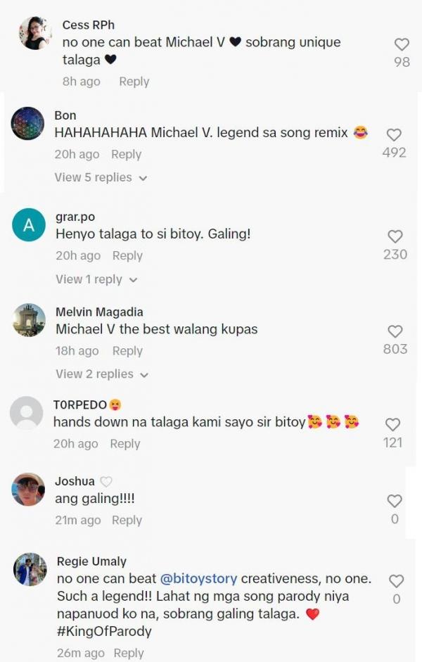One of them even posted, “No one can beat @bitoystory creativeness, no one. Such a legend!! Lahat ng mga song parody niya napanuod ko na, sobrang galing talaga. ❤️#KingOfParody”