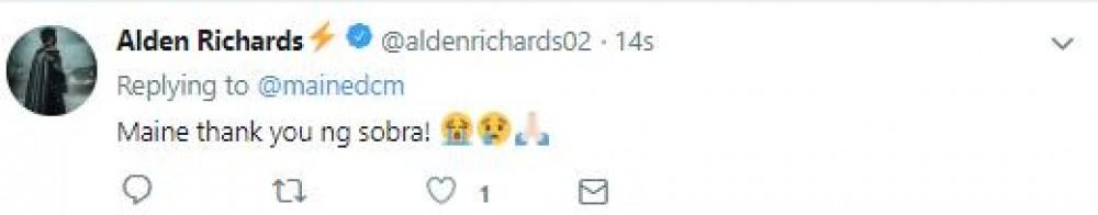The Dubsmash Queen of the Philippines tweeted that she wishes Alden the best of luck in Victor Magtanggol. She also assured him that she will always be there cheering him on.