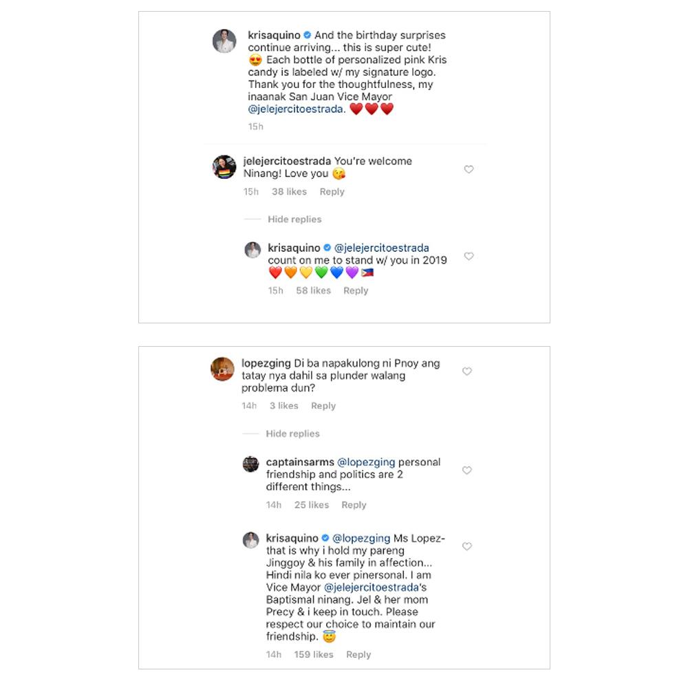 Patunay lamang na walang lamat ang relasyon ni Kris at pamilya Estrada ang birthday gift na ipinadala sa kaniya ng anak ni Jinggoy na si San Juan City Vice Mayor Janella “Jel” Estrada.