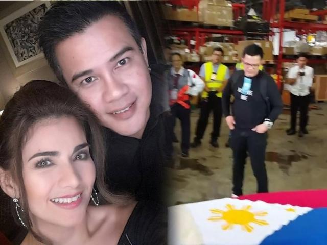 Naging emosyonal si Arnel Cowley nang salubungin ang labi ng kanyang asawa na si Isabel Granada.