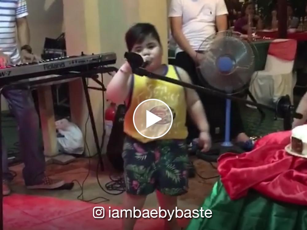 In the joint celebration of his homecoming and his grandfather’s birthday, he spreads the Christmas cheer among his guests by entertaining them. Just as he does in Eat Bulaga, he delighted his audience with his own version of Santa Claus is Coming To Town.