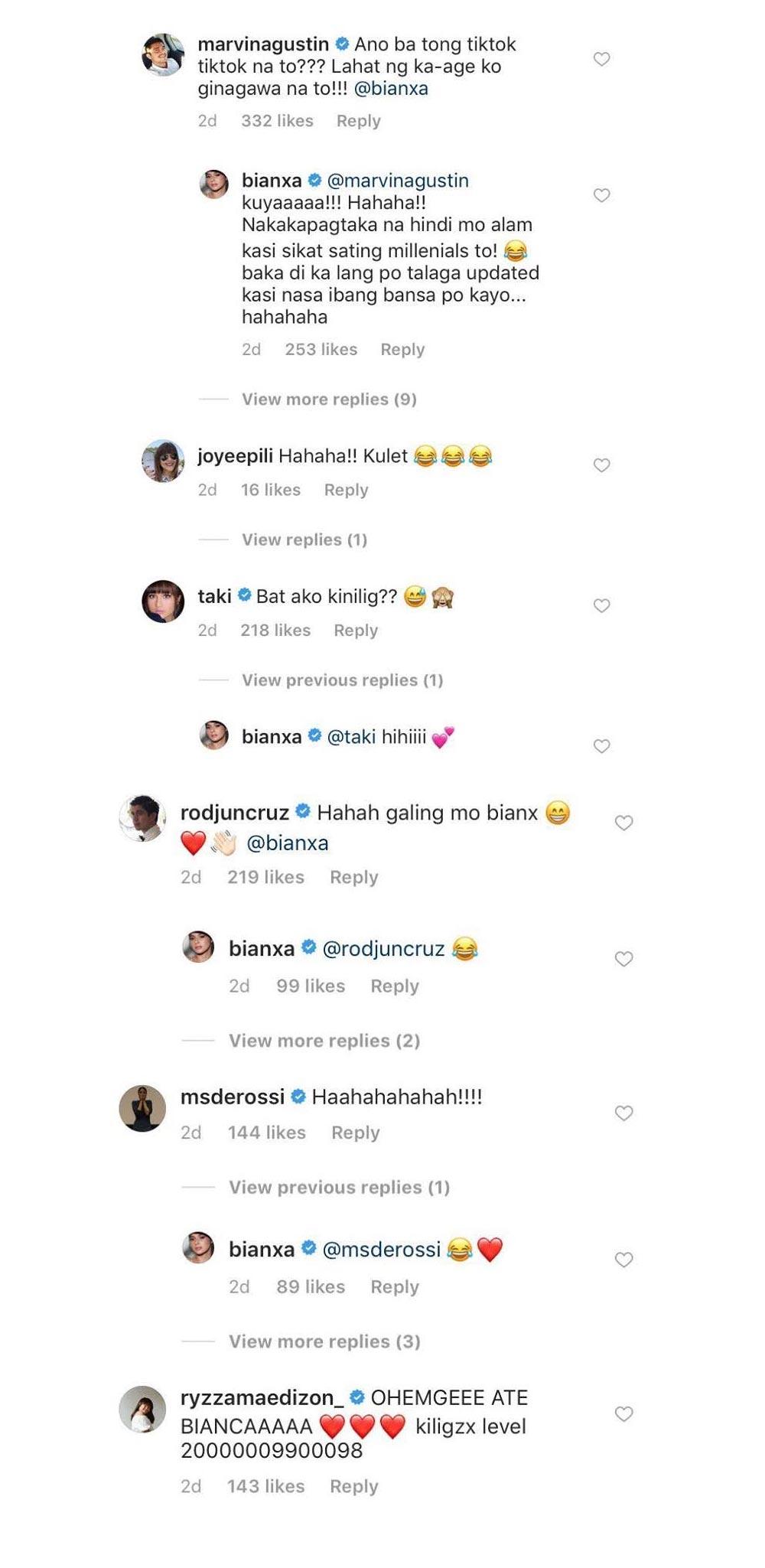 Maging ang kanyang kapwa artista na sina Marvin Agustin, Taki Saito, Rodjun Cruz, Alessandra De Rossi at Ryzza Mae Dizon, hindi rin napigilang kiligin at magkomento sa kanyang cute and funny videos.
