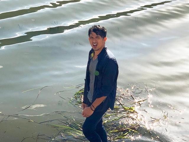 Nag-post din siya ng larawan kung saan kakaahon lamang niya mula sa ilog. Aniya, "Malinis siya promise."