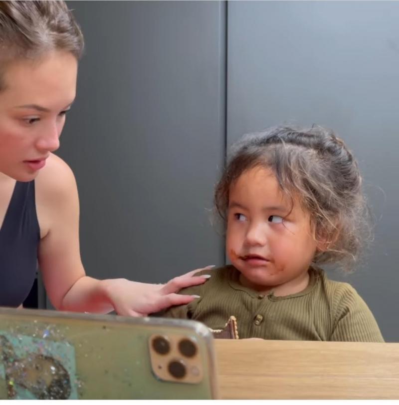 As Ellen touched her three-year-old's shoulder, she calmly reminded him that he had enough cookies and Elias gave her the side-eye look.