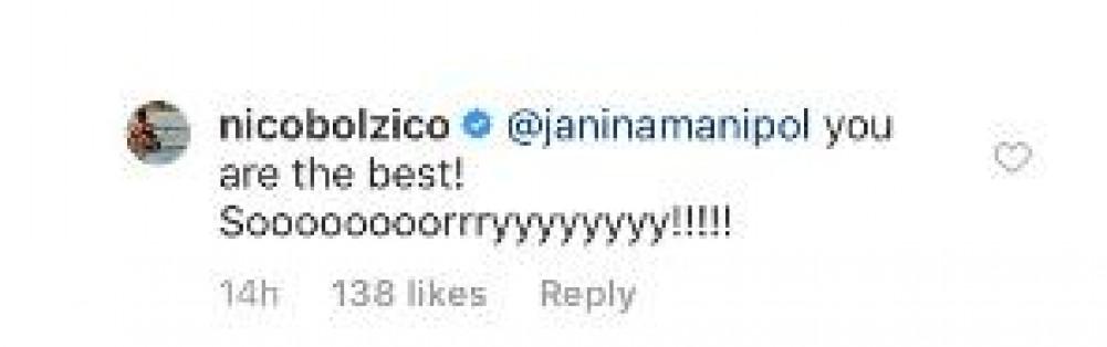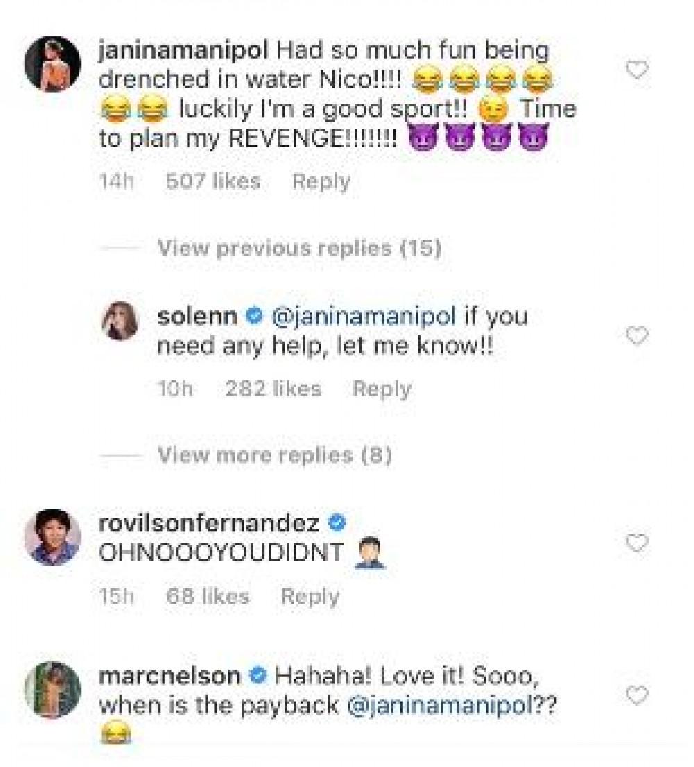 Nagkomento sa Instagram video si Janina Manipol na hindi minasama ang mga nangyari. Nag-biro pa ito na maghihiganti sa Argentinian businessman at nag-volunteer pa tumulong si Solenn.