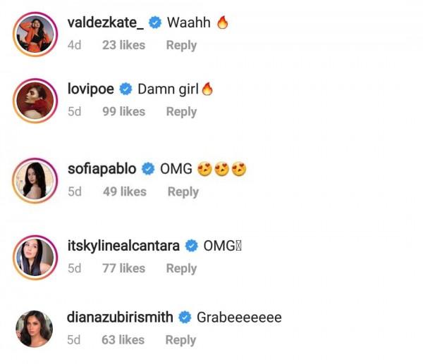 Among the celebrities who slipped through the comment section were Kapuso ladies Lovi Poe, Diana Zubiri, Kyline Alcantara, Kate Valdez, and Sofia Pablo.