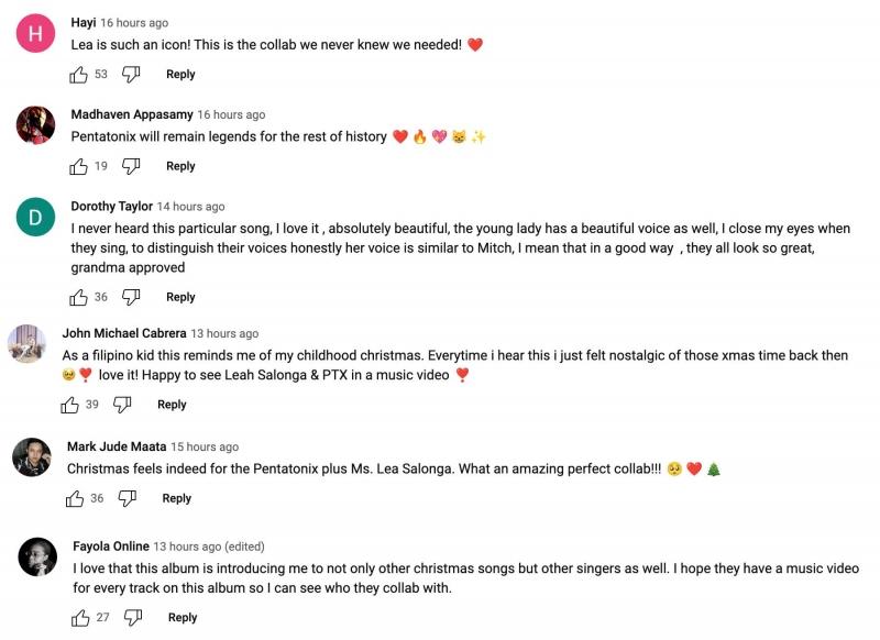 One user commented, "As a Filipino kid this reminds me of my childhood Christmas. Everytime I hear this I just felt nostalgic for those Xmas times back then, love it! Happy to see Lea Salonga & PTX in a music video."