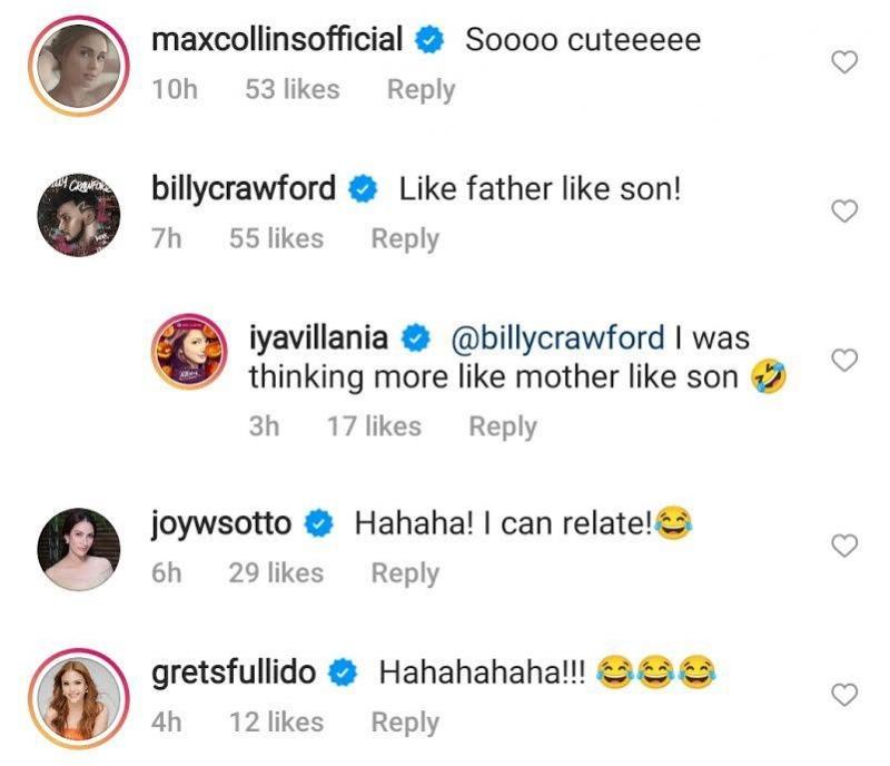 Actor and TV host Billy Crawford wrote in the comments section, “Like father like son!” and Iya replied, “@billycrawford I was thinking more like mother like son.”