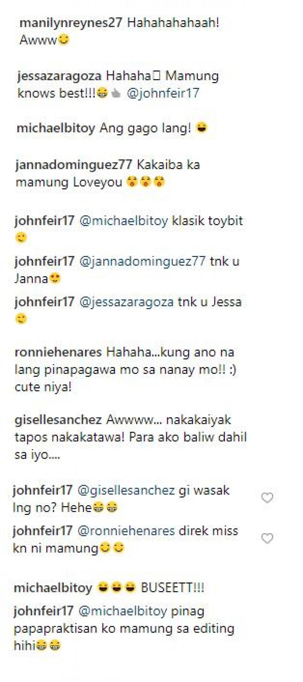 Ilang celebrities naman ang nag-react sa "Mamung Knows Best videos" ni John tulad na lang nina Michael V, Manilyn Reynes, Jessa Zaragoza at Giselle Sanchez.