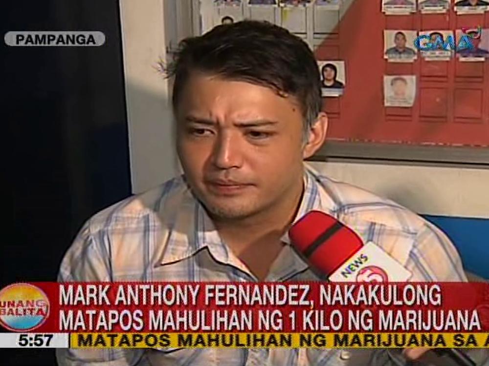 Nakakulong ngayon sa Station 6 Angeles, Pampanga si Mark Anthony Fernandez matapos mahuli ng mga pulis na mayroon siyang isang kilo ng marijuana sa sasakyan.